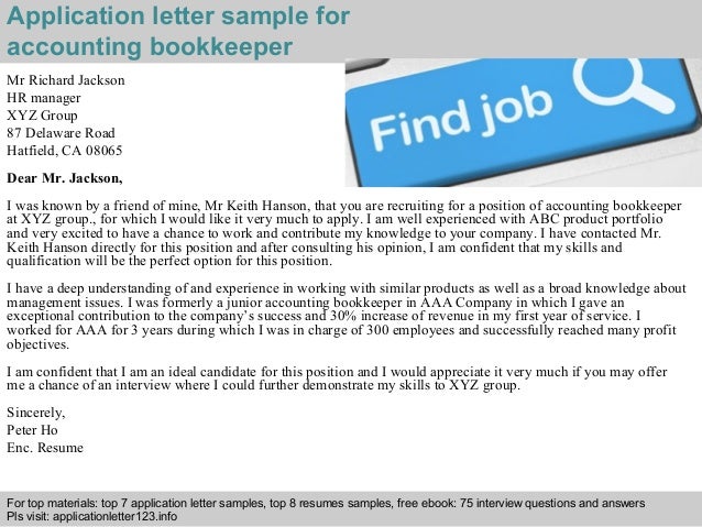 How to write a bookkeeper cover letter? Bookkeepers are some of the most important people in an organization. Technically skilled bookkeeper responsible for the full charge bookkeeping function. You can also look at the letter of intent examples.