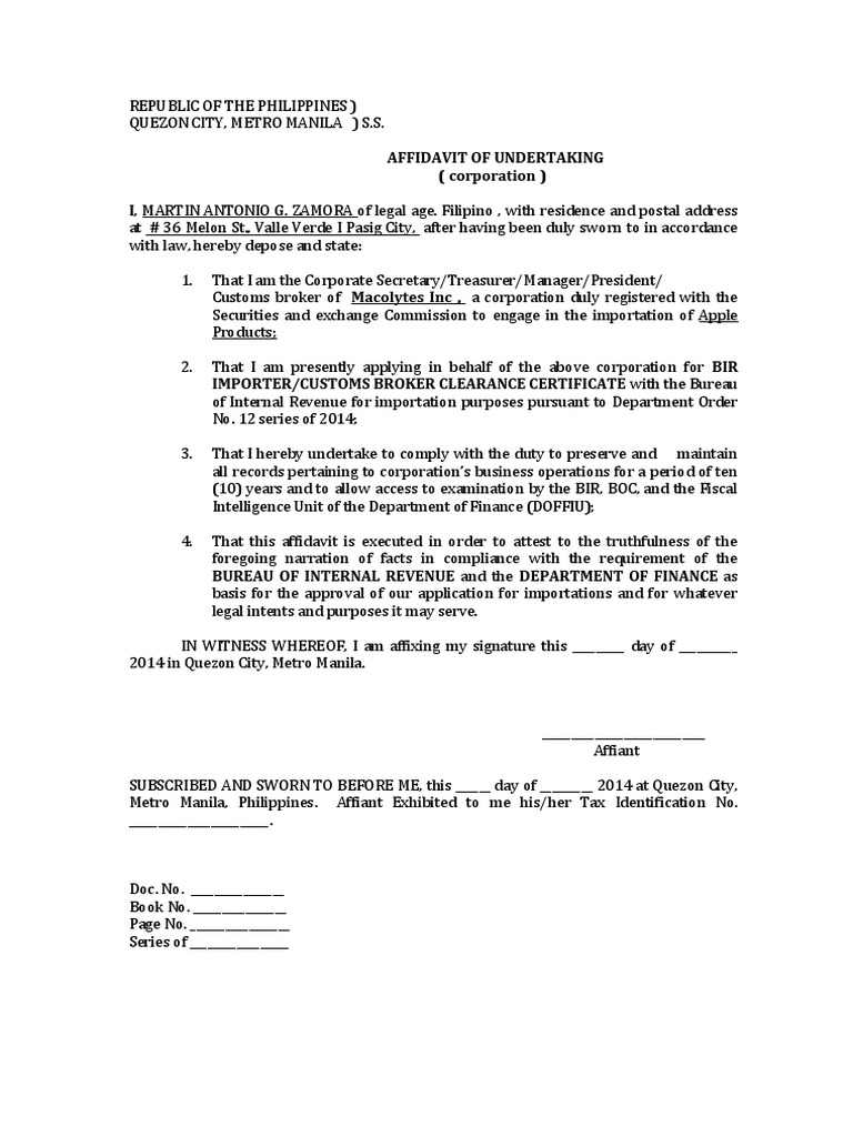 Letters of undertaking in respect of the insurances as required by the security documents together with copies of the relevant policies or cover notes or entry certificates duly endorsed with the interest of the finance parties. A letter of undertaking can be a legally binding form that makes both parties obligated to fulfill the terms of an arrangement that was previously agreed upon. Sample letter of undertaking this sample letter may be used as a guide by surveyor accreditation applicants as evidence that they have chosen to conduct their business in accordance with the marine surveyors accreditation guidance manual 2014 in lieu of an iso quality management. Page includes various formats of authorization letter sample for pdf, word and excel.