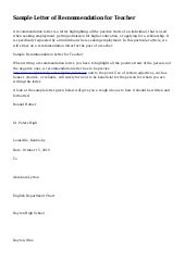 Get Recommendation Letter Sample For English Teacher Images. Sample teacher recommendation letter (text format). Sample recommendation letter for a teacher.