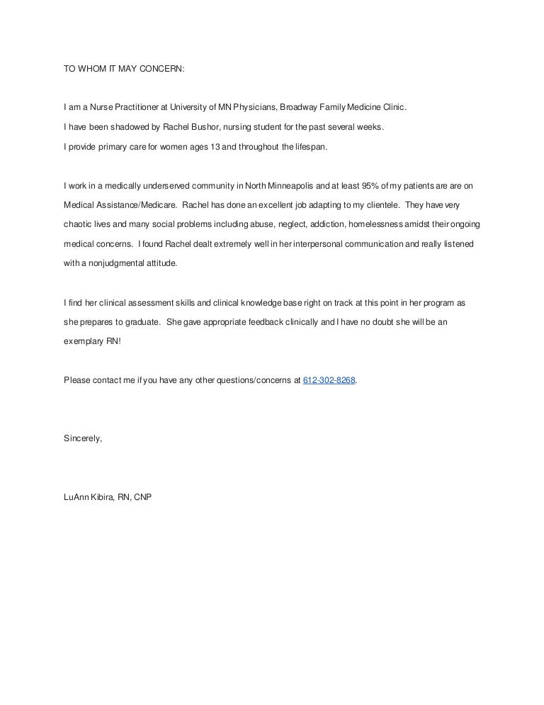 Let our experts teach you the best way to write your own powerful i am writing this letter to recommend clarissa seigel for the position of registered nurse at your hospital. If you were asked by a registered nurse to write a letter of recommendation and you are fully aware that you are not exactly the perfect person to do so, then admit it rather than risking the applicant's chances of getting hired. When gwen was studying nursing she worked many. Check out our nurse practitioner cover letter sample to get started!